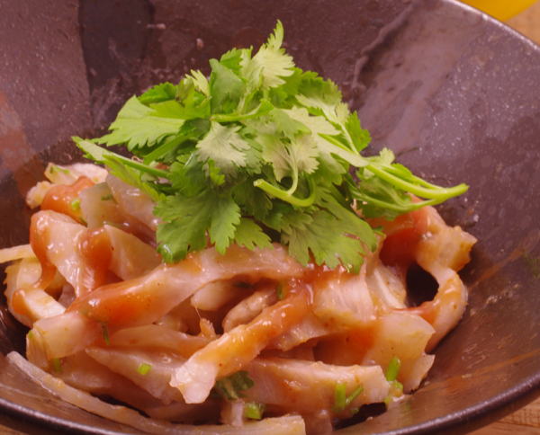 절구봉 등을 사용하여 두드린 오이를 조미료로 간한 요리.