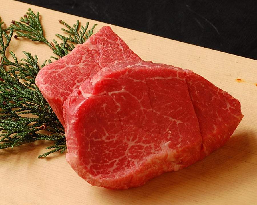 안심이라고 불리는 소의 허리 부분을 사용한 고기요리.