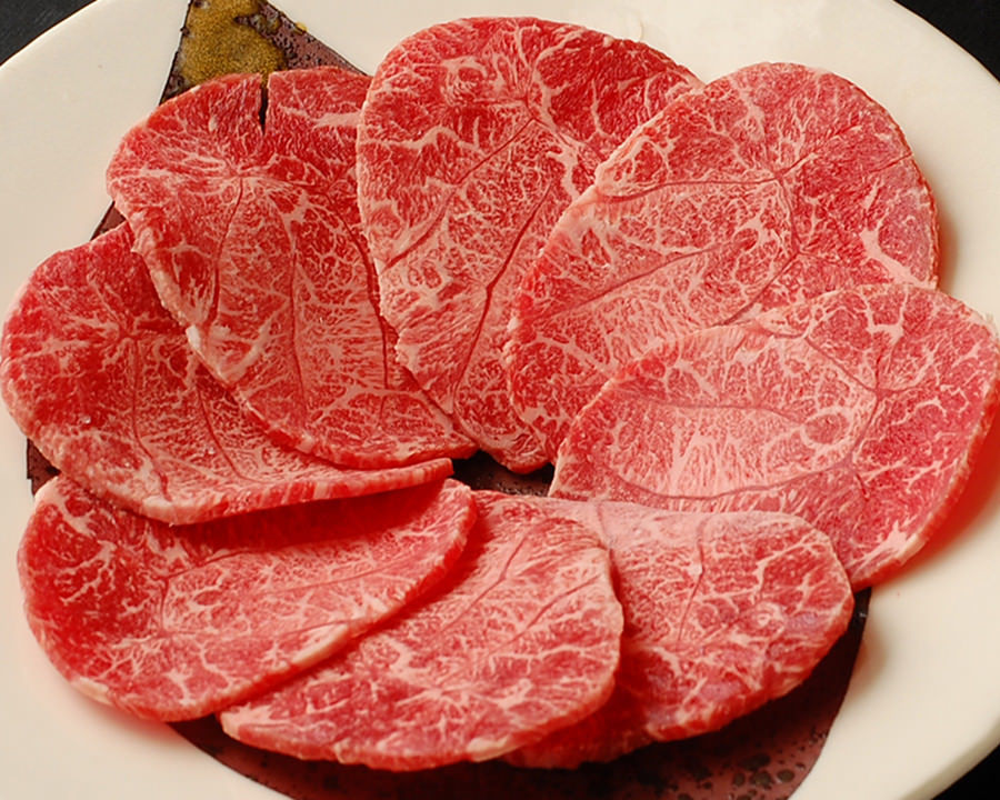 상급 안창살이라고 불리는 횡격막 부분을 사용한 고기요리.