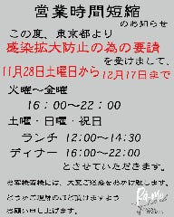 화~토 디너:18:00~23:30(L.O.22:30, 드링크 L.O.23:00)