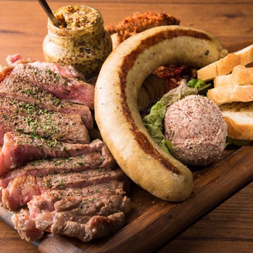 얇게 썬 고기에 올리브 오일과 소금 후추를 뿌린 요리.
