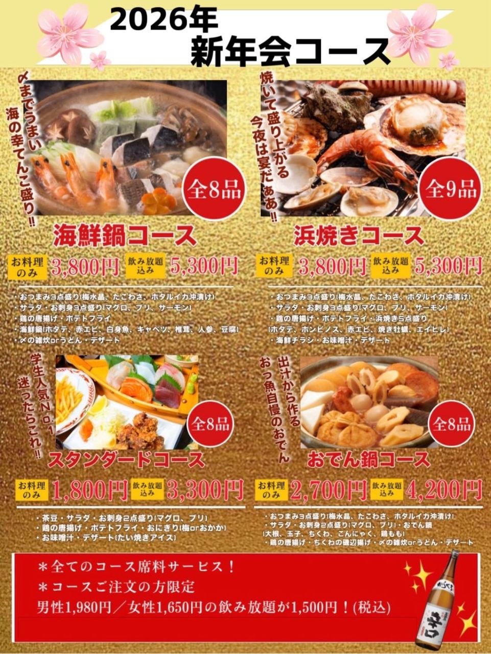 ●좌석만 예약 소정의 취소수수료를 지불해야 할 경우가 있으므로, 자세한 사항은점 포로연락해 주시길 바랍니다. |