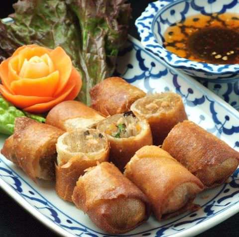 쌀가루로 만든 피 (라이스페이퍼)에 속 재료를 넣고 말아낸 요리. 달짝지근 한 소스에 찍어 먹는다.