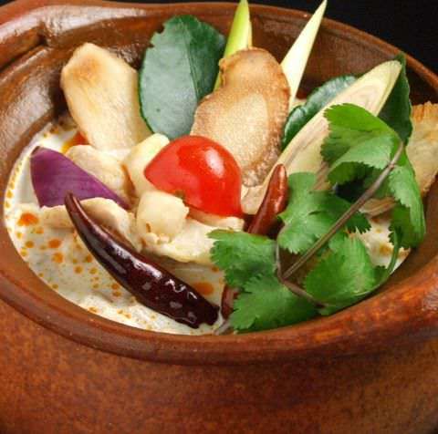 닭고기와 식재료를 코코넛밀크와 레몬그라스 등의 허브와 함께 끓인 수프.