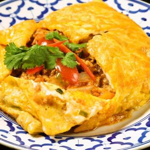 다진고기와 달걀 등의 식재료를 남플라로 맛을 내 부친 요리.