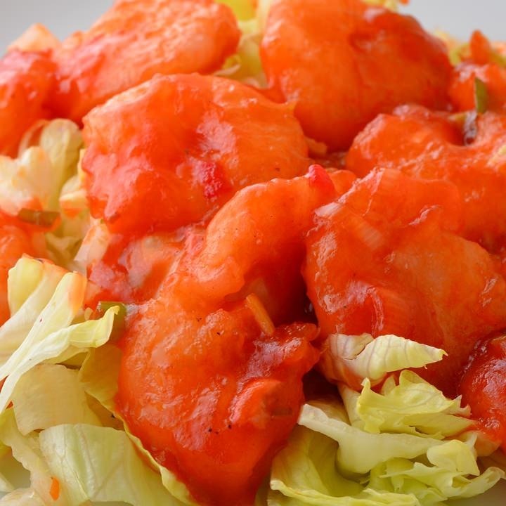 튀김옷을 입힌 돼지고기를 기름에 튀겨 채소와 함께 볶은 뒤 새콤달콤하게 만든 요리.