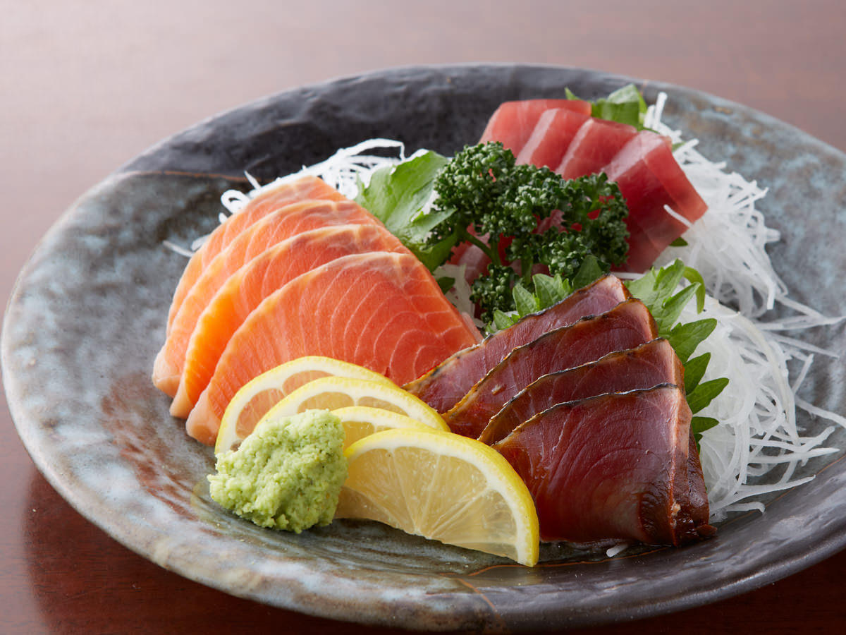 참다랑어 횟살을 얇게 썰어 간장 등에 찍어 먹는 요리.