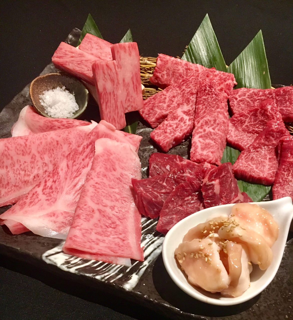 와규의 안창살이라고 불리는 횡경막 부분을 사용한 고기 요리.