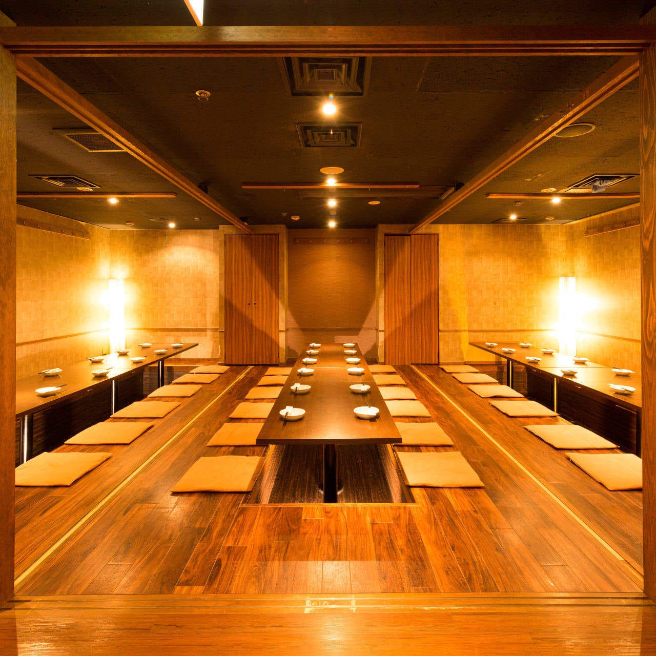 호리코타츠와 좌식석이 준비되어 있는 넓직한 원 플로어는 30~50 명까지 전세 OK