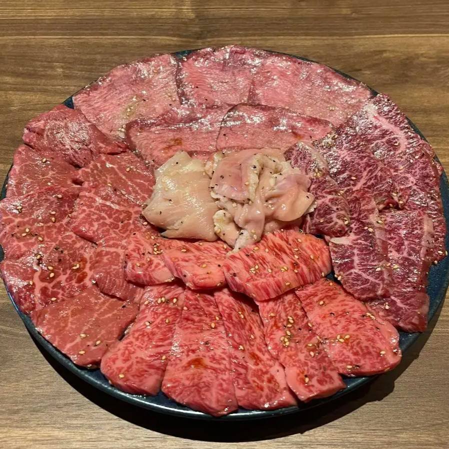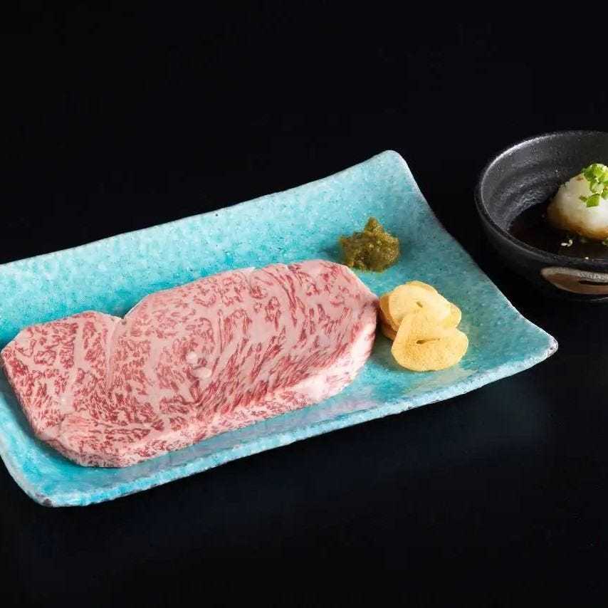 등심이라고 불리는 와규 등 부분의 모둠 요리.