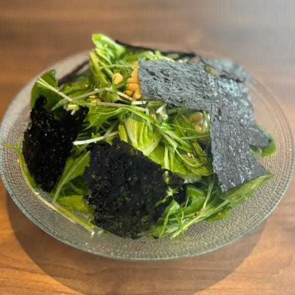 한국산 김과 참기름으로 마무리한 한국산 김 샐러드. 소금과 참기름을 함께 섞습니다.