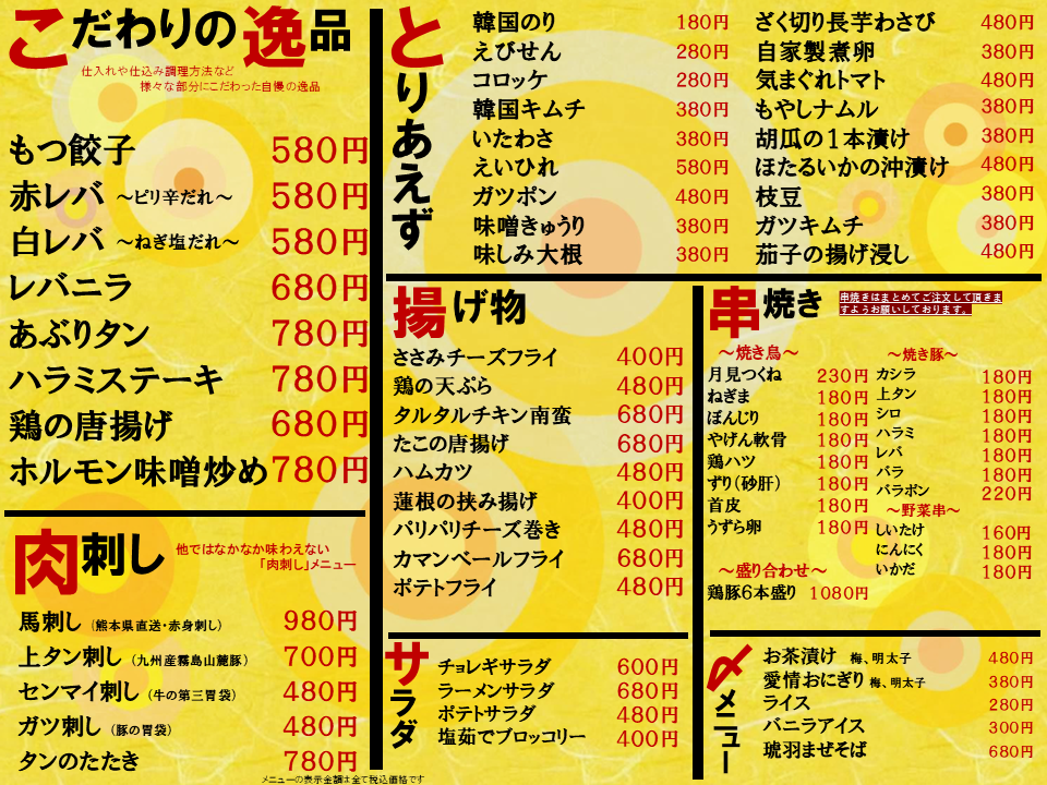 월~목/국경일 전날 17:00~24:00(L.O.23:00, 드링크 L.O.23:30) 금/흙 17:00~다음 1:00(L.O.24:00, 드링크 L.O.24:30) |