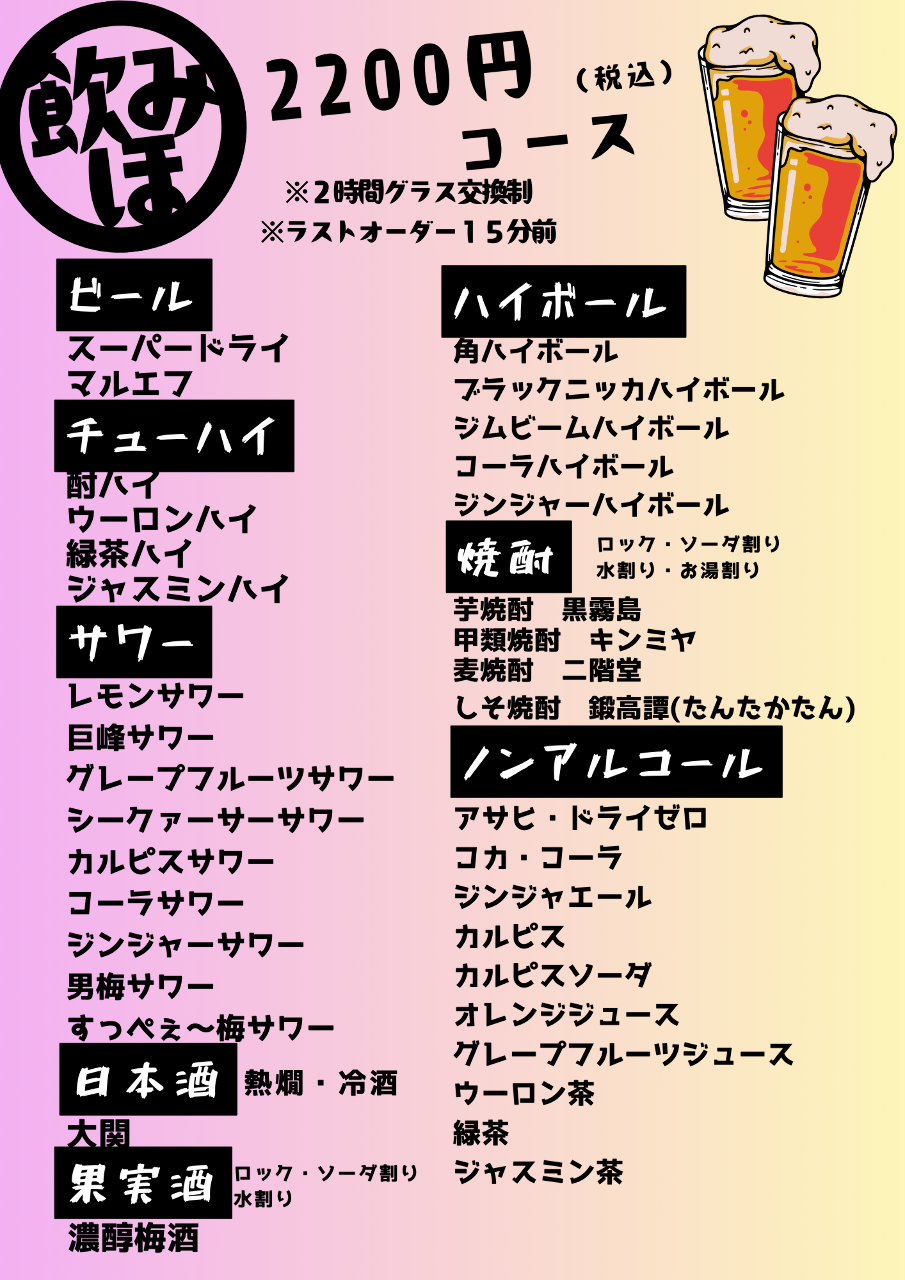월/수~금 디너:17:00~23:00(L.O.22:00, 드링크 L.O.22:30)
