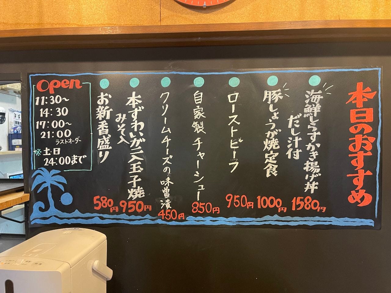 토/일/국경일 11:30~24:00(L.O.21:00, 드링크 L.O.23:30)