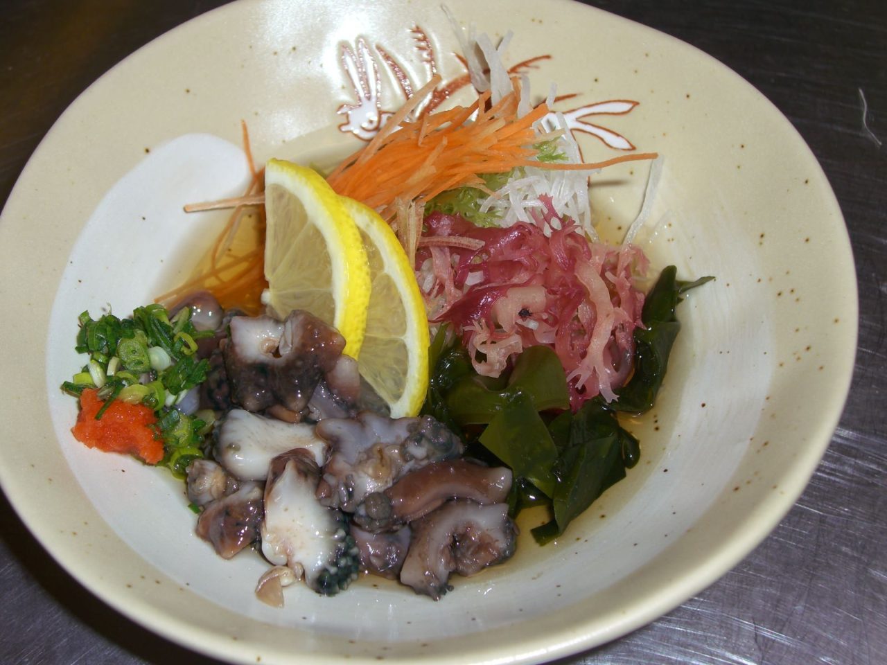 데친 문어를 식초에 무친 요리.