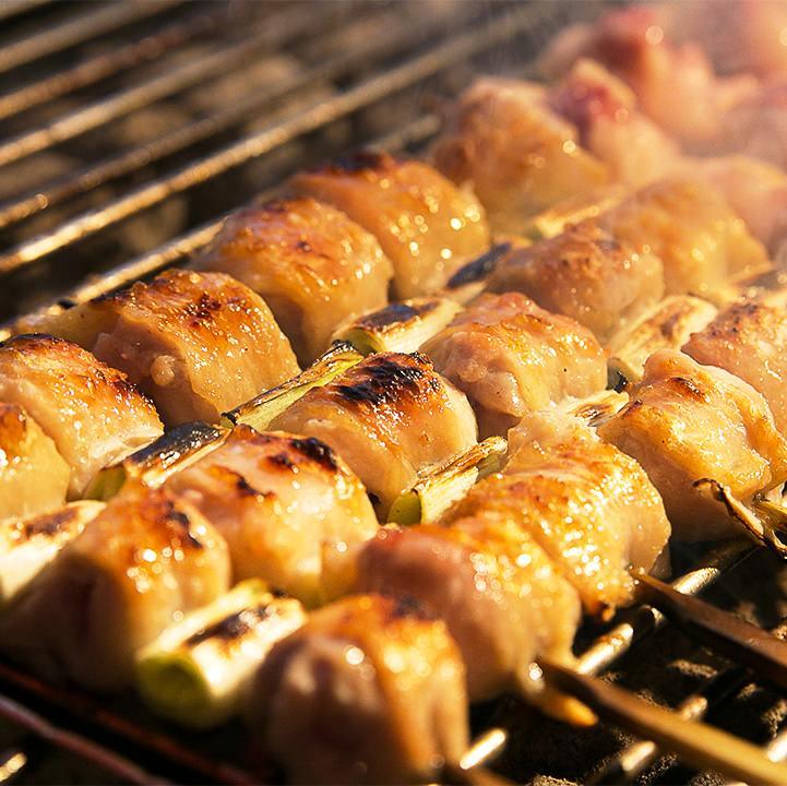 한입 크기의 닭 곱창이라고 불리는 부분을 꼬치에 꿰어 직화구이한 요리.