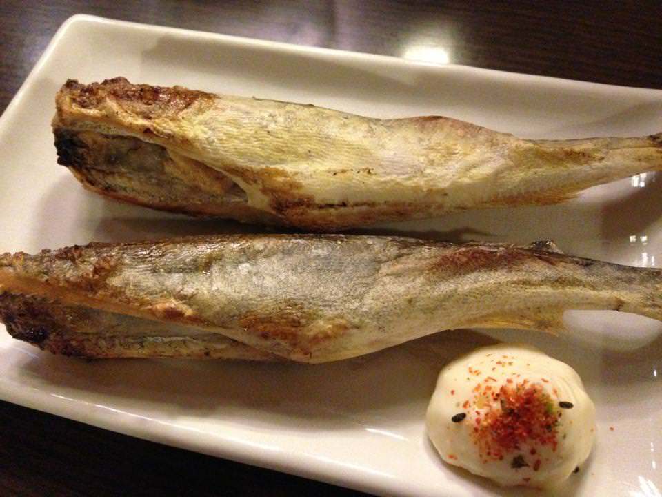주먹밥 (손으로 만든 밥)에 간장과 된장들을 발라, 구이망으로 구운 요리.
