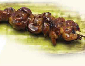 밑간한 닭의 간을 한입 크기로 꼬치에 꿰어 직화구이한 요리.