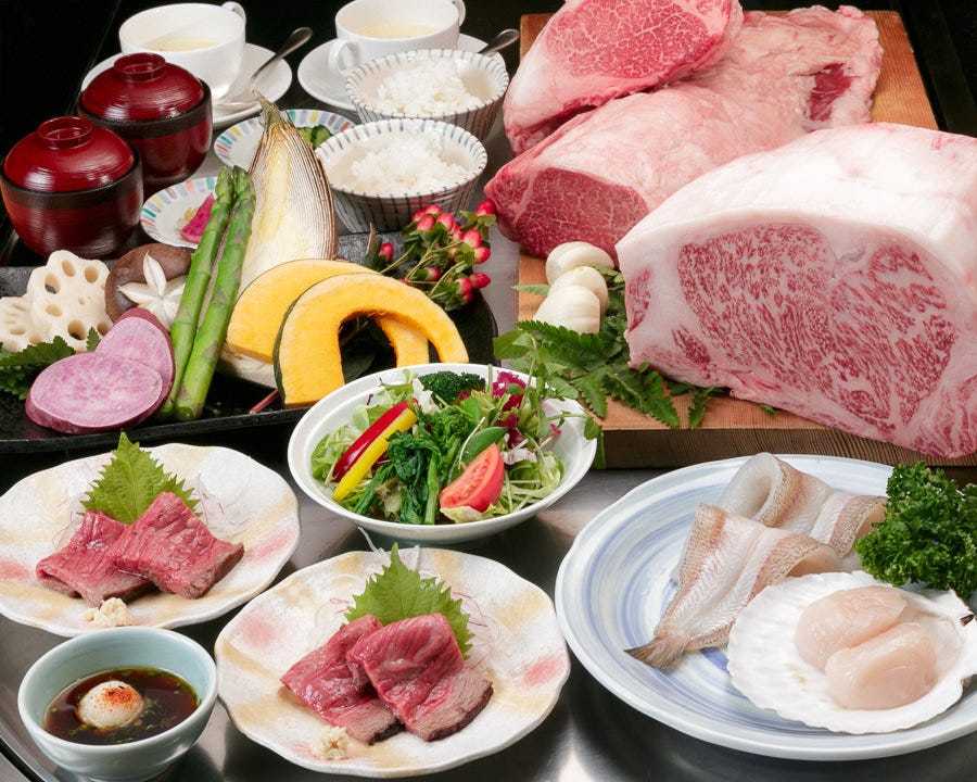 <A>特選黒毛和牛サーロイン 120gと選り抜きの旬の魚介コース ボリューム満点