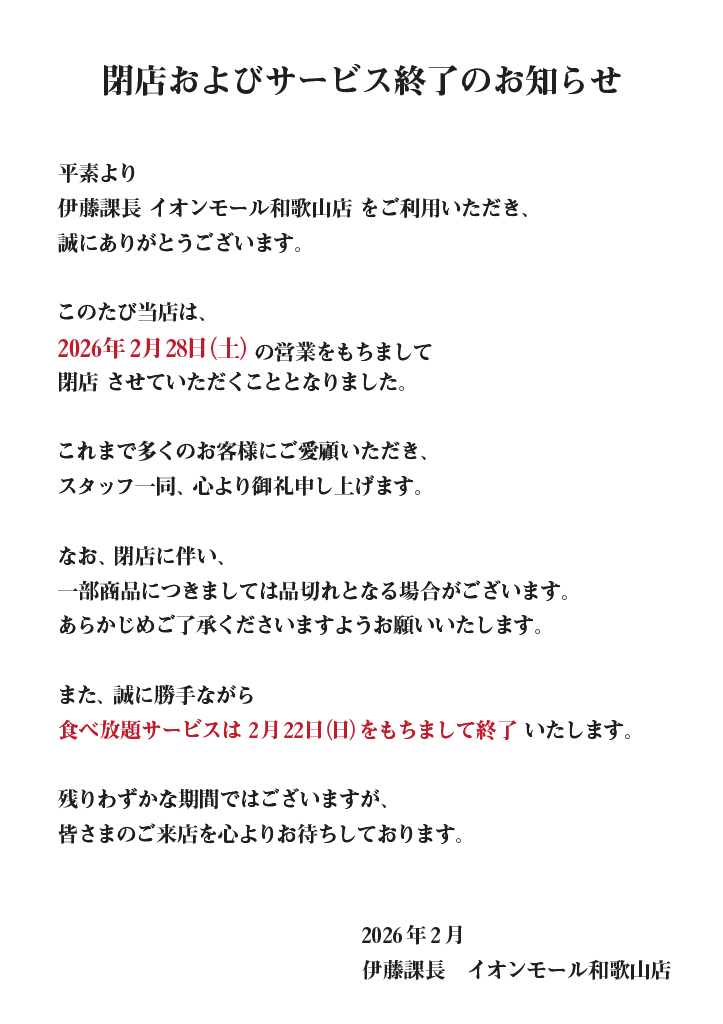 ●좌석만 예약 예약을 취소하는 경우에는 아래 규약 적용하여 드립니다. 코스 예약 당일 취소 (연락 없음):100% 좌석 예약(1 인당) 당일 취소 (연락 없음):3000엔 |