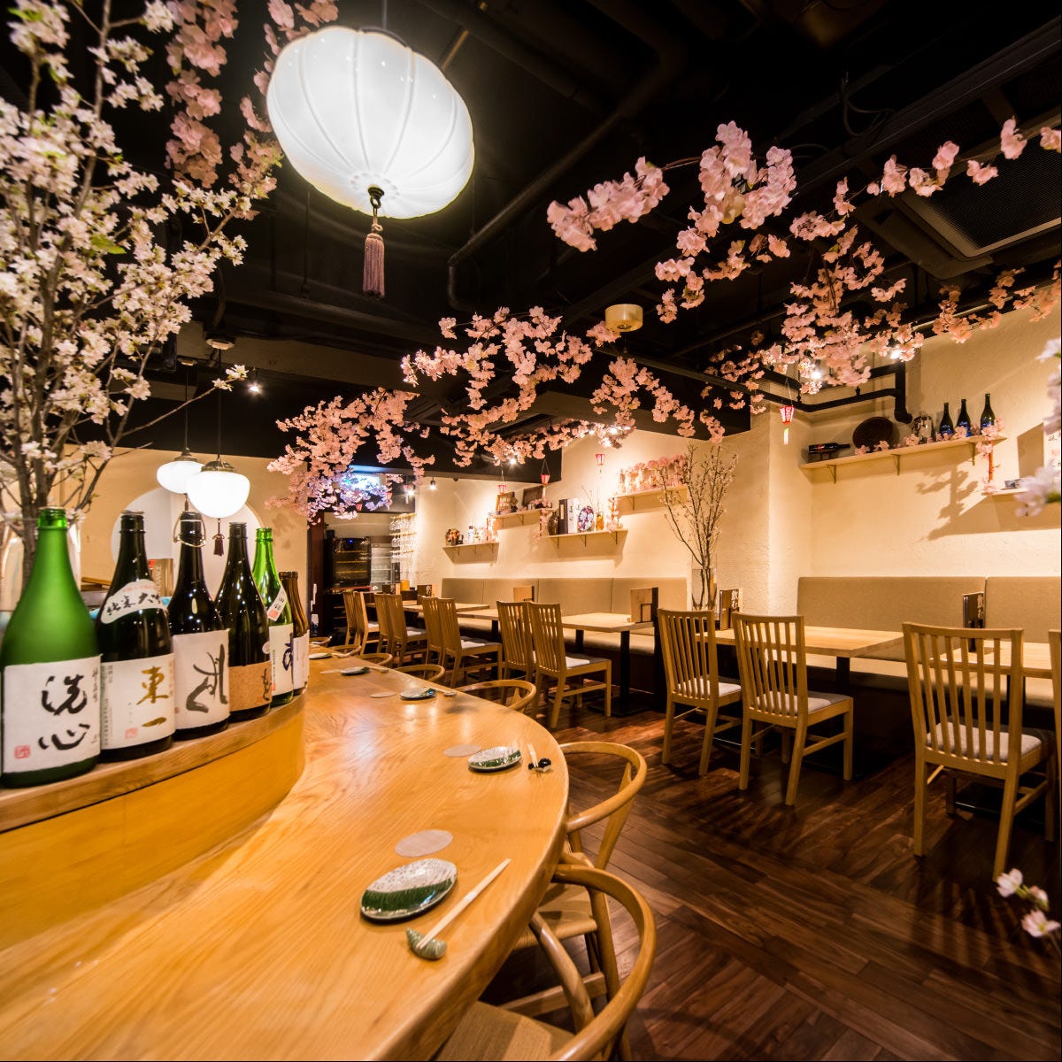 엄선한 일본주, 와인에 잘 어울리는 제철 요리를 즐길 수 있습니다! 이자카야 메뉴도 다수 준비 중. 실내는 일본 전통의 차분한 공간입니다.
