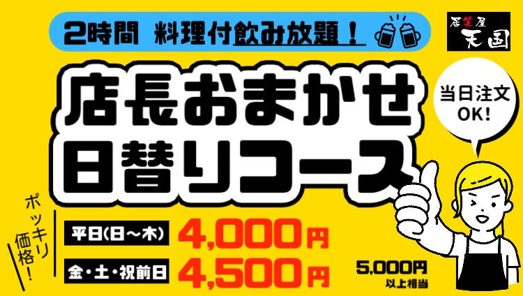 ●좌석만 예약 예약을 취소하는 경우에는 아래 규약 적용하여 드립니다. 코스 예약 당일 취소 (연락 없음):100% 당일 취소 (연락 있음):60% 전날 취소:50% 좌석 예약(1 인당) 당일 취소 (연락 없음):2000엔 |