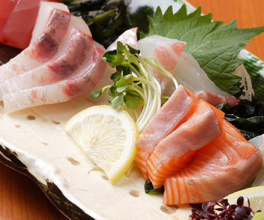 어패류 회를 밥 위에 얹은 요리.
