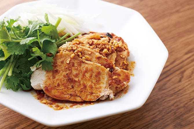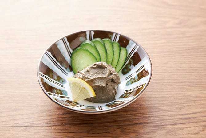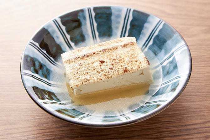 찬 두부에 양념을 올려 간장과 함께 먹는 요리.
