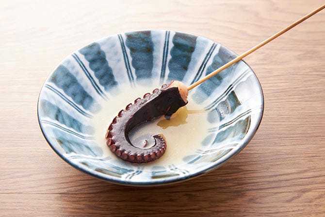 문어를 꼬치에 꽂아 튀김옷을 입혀 기름에 튀긴 요리.