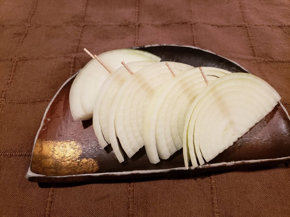 양파를 소량의 기름을 써서 프라이팬 등으로 구운 요리.