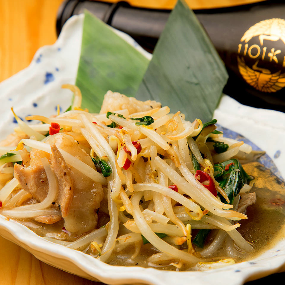 오징어와 아스파라거스를 소금과 소량의 기름에 볶은 요리.