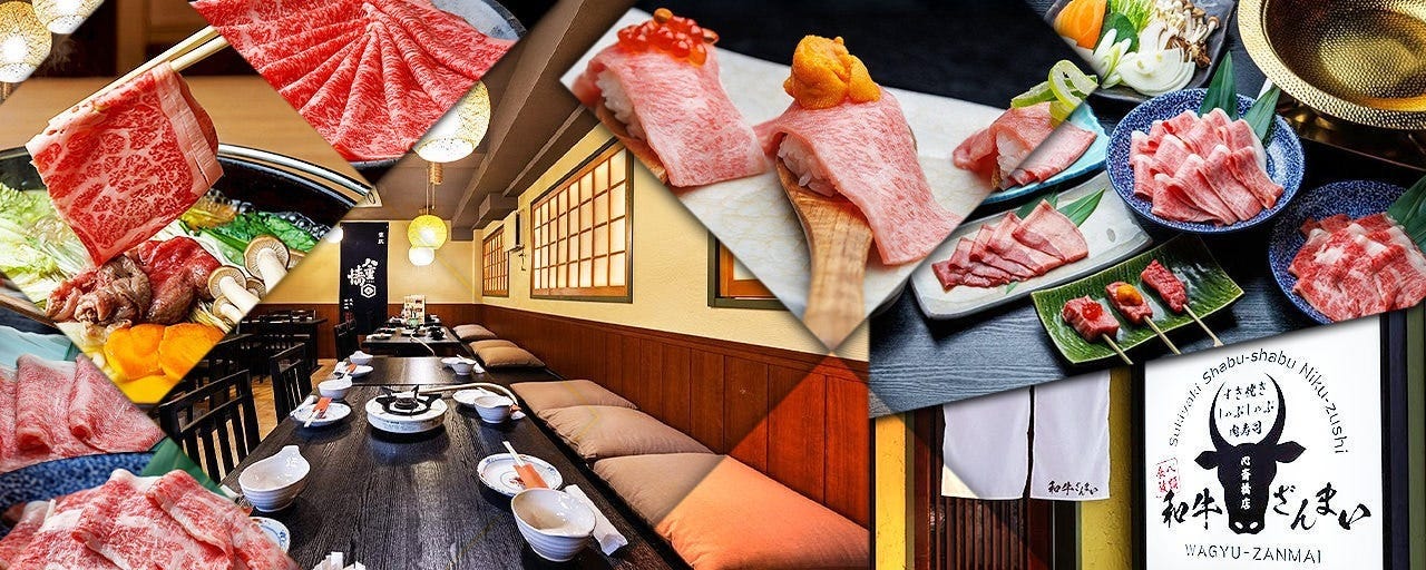 【나가호리바시역 도보 1분】 신사이바시에서 엄선한 와규와 최고급 돼지고기를 즐기는, 지복의 무제한 뷔페 미야자키규·마쓰사카규·남국보리돼지의 샤브샤브와 스키야키, 기타 전골 등장 구운 고기 초밥과 와규 꼬치구이 등 풍성한 사이드 메뉴도