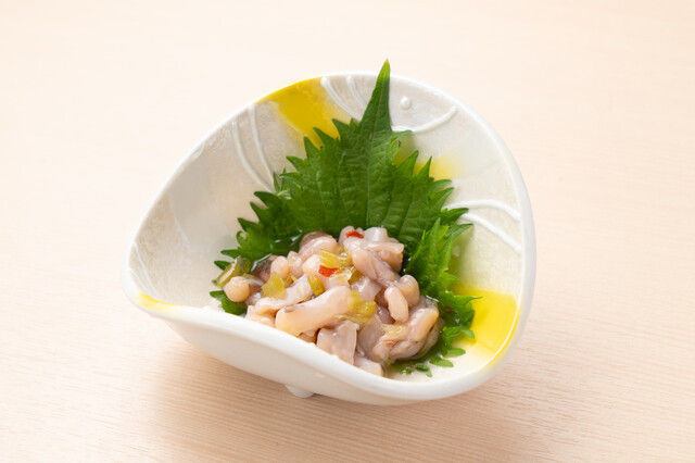 상어의 연골과 소금으로 절인 매실의 과실을 무친 요리.