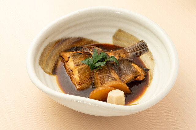 도미 서더리를 사케 미림 등 여러가지 조미료를 넣어 조린 요리.