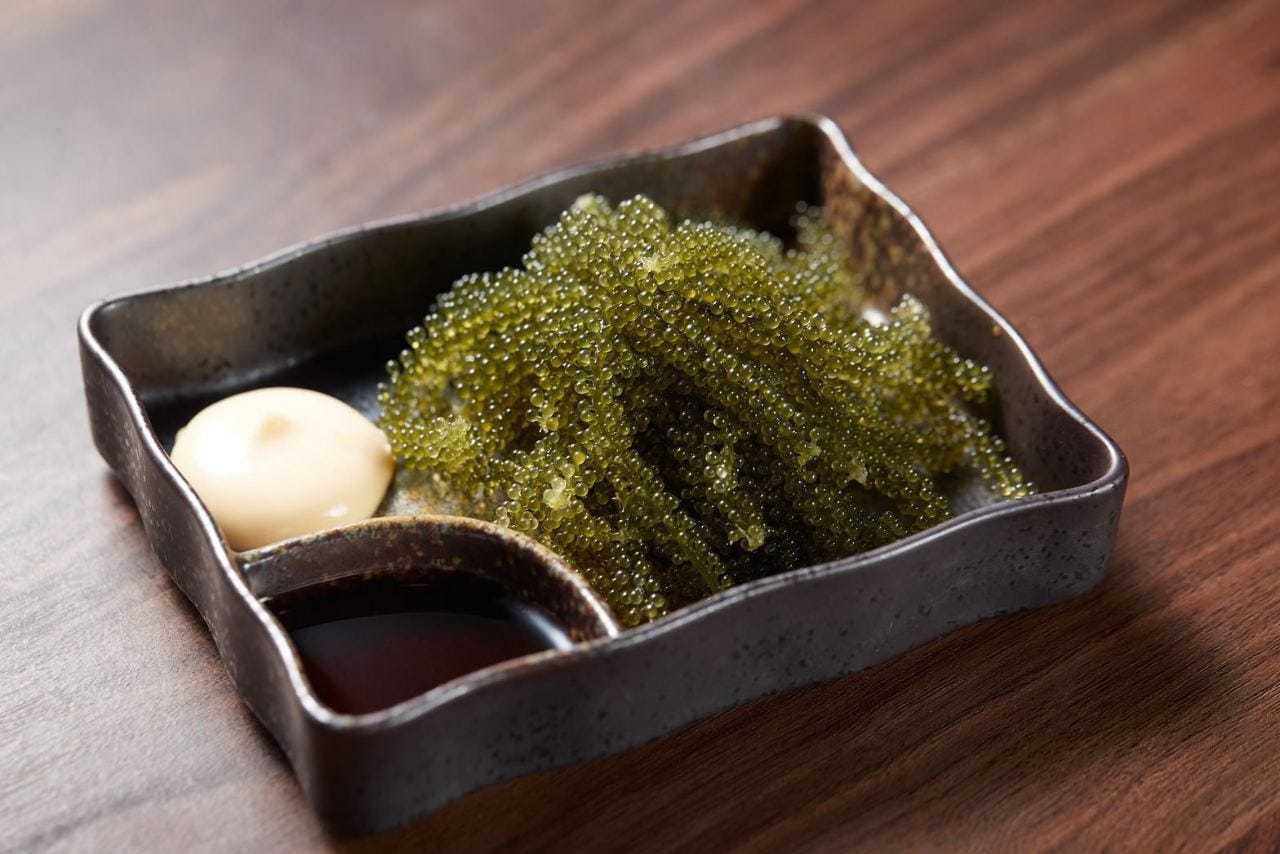 큰 실말(끝이 갈라진 실처럼 가는 해조류)을 식초에 무친 요리.