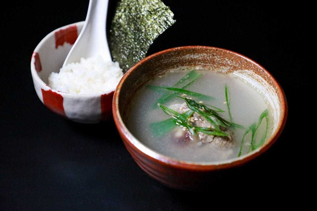 소꼬리와 여러 가지 채소를 끓인 뒤 조미료로 맛을 낸 국물을 밥에 부은 요리.