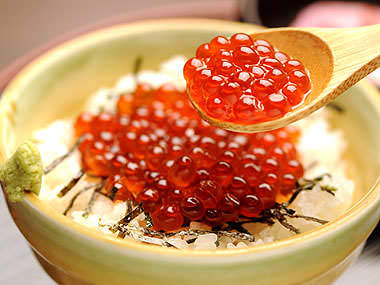 연어알, 쌀, 김, 와사비