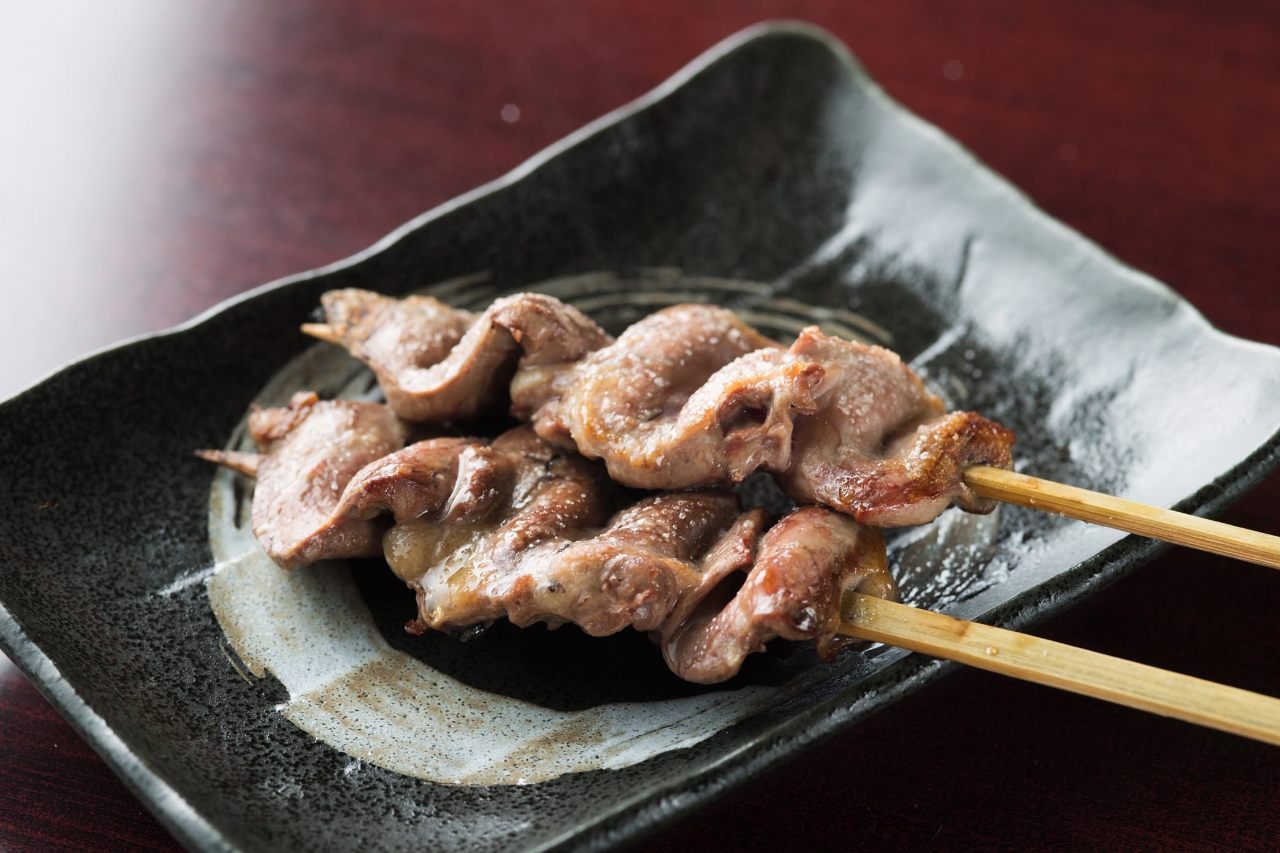 밑간한 똥집(닭 위의 일부분)을 꼬치에 꿰어 직화구이한 요리.