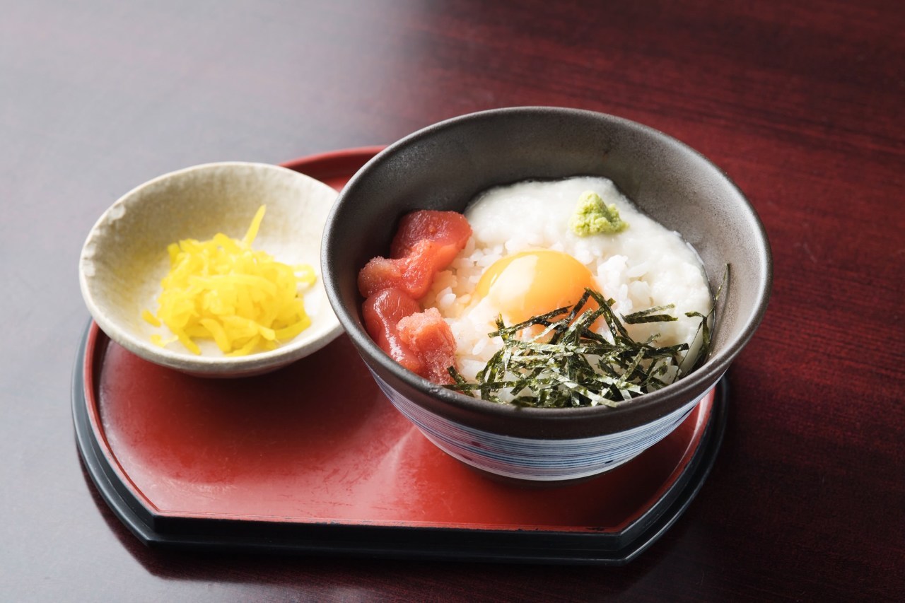 밥 위에 소금으로 절인 뒤 참기름과 고춧가루 등의 조미료로 맛을 낸 대구의 내장과 날달걀을 얹은 요리.