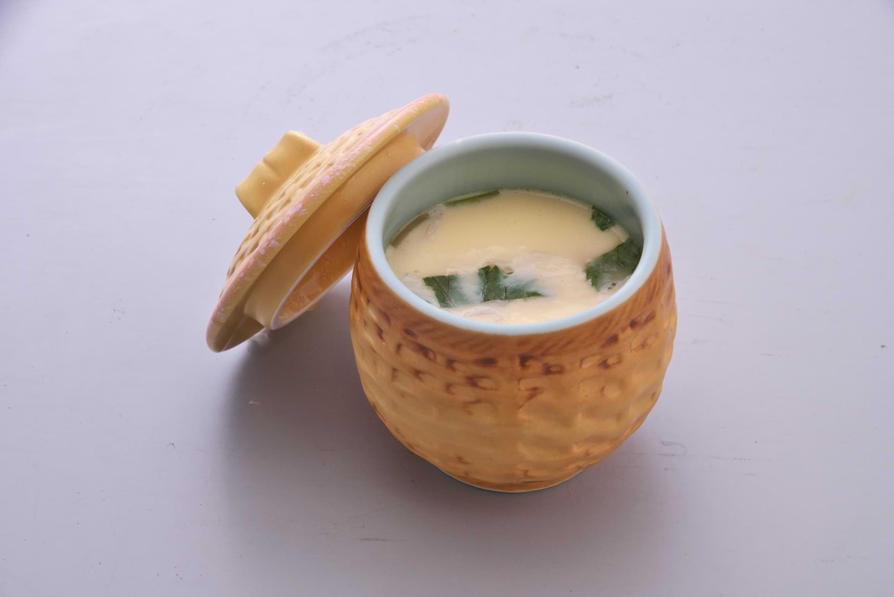 밥공기(자완)에 푼 달걀, 건더기, 육수를 넣고 섞어 찜통에 찐 요리.