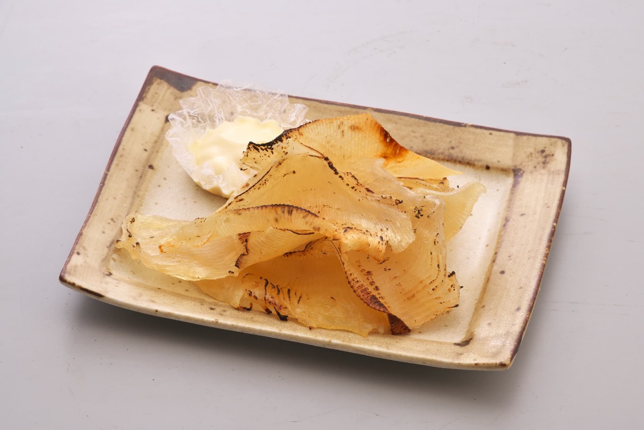 건조시킨 가오리류의 지느러미, 가볍게 굽고 간장이나 마요네즈로 먹기가 전형적이다.