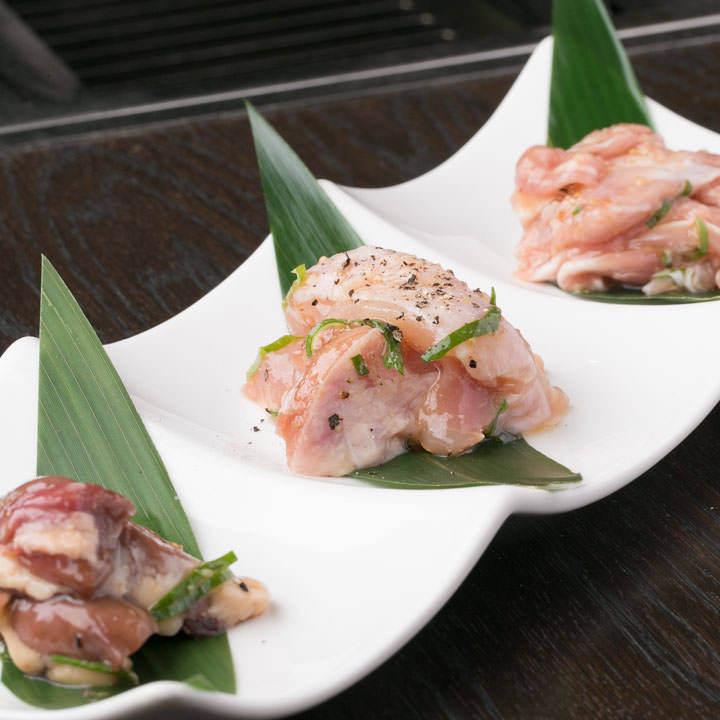 생것 또는 가볍게 삶은 닭가슴살이라고 불리는 늑골 주변의 고기를 1cm 정도로 썬후 소스와 양념을 묻혀 달걀노른자를 올린 요리.
