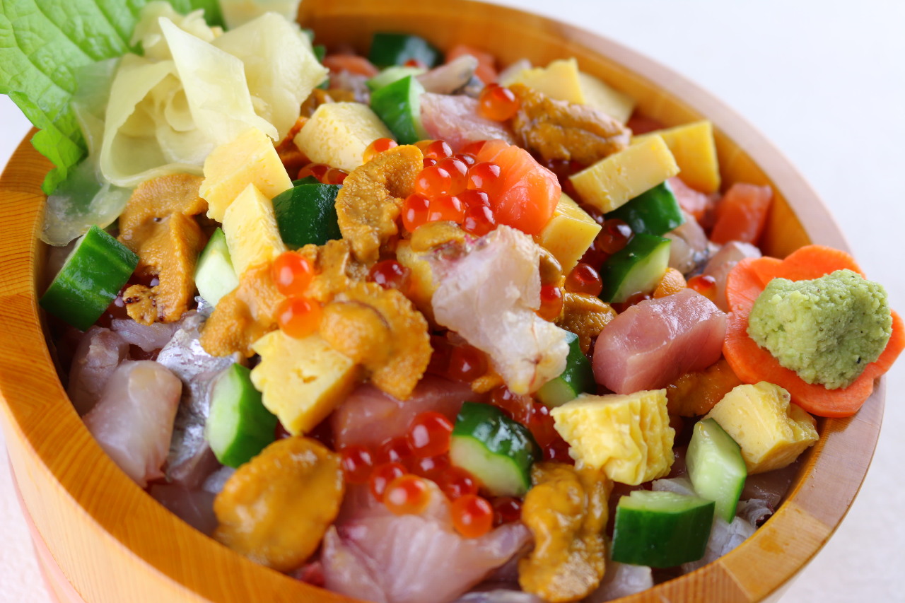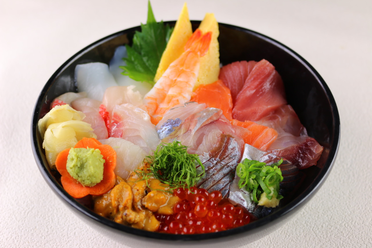 어패류 회를 밥 위에 얹은 요리.