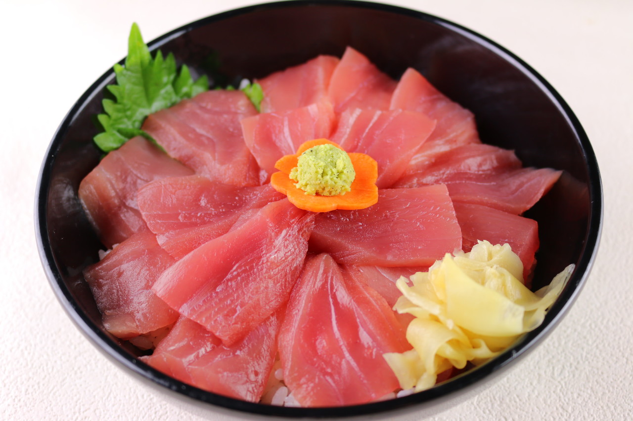 다진 참치에 잘게 썬 파를 뿌리고 밥 위에 얹은 요리.