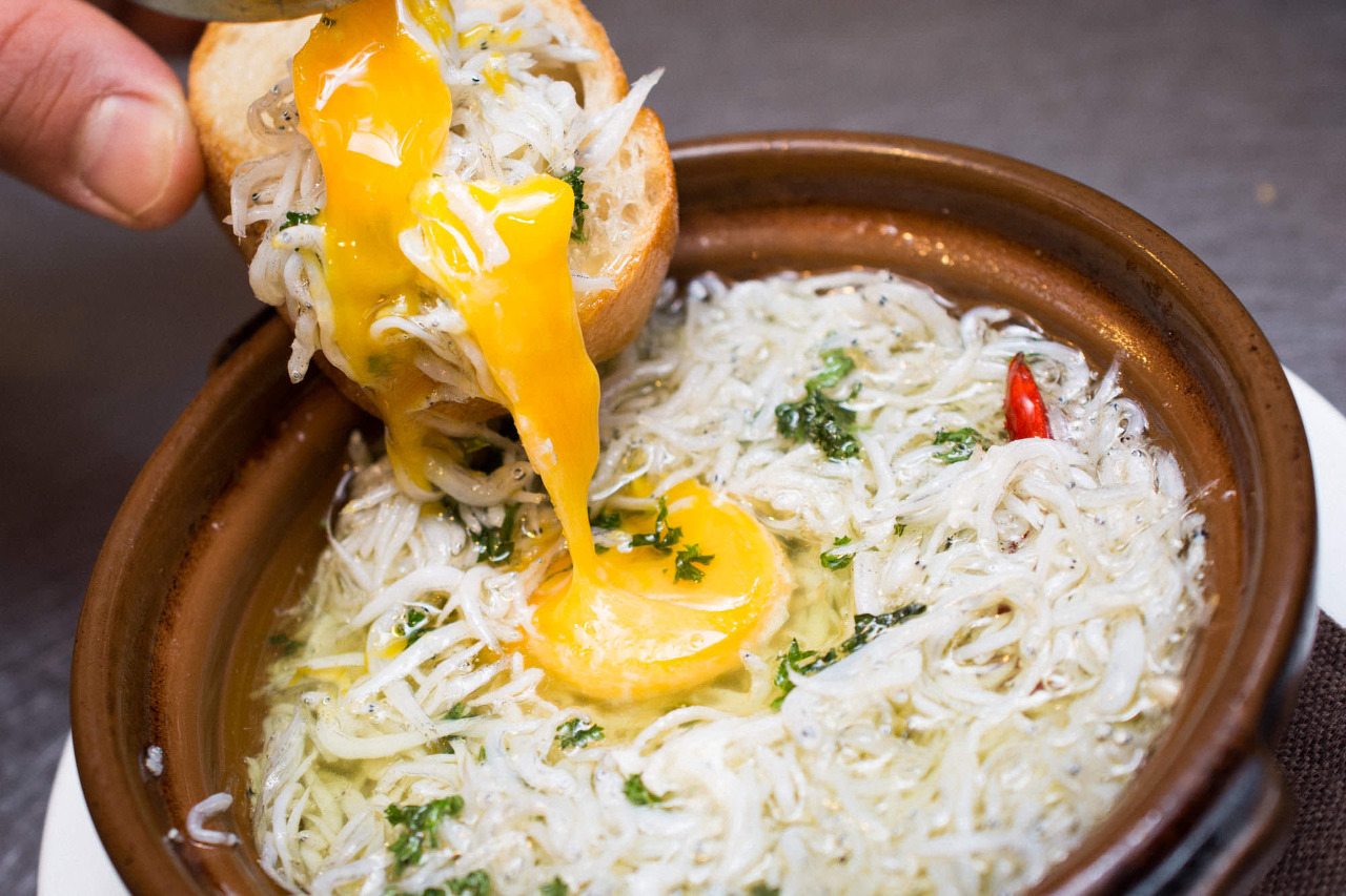 어패류와 채소를 마늘 과 올리브 오일 등에 끓인 스페인 요리.