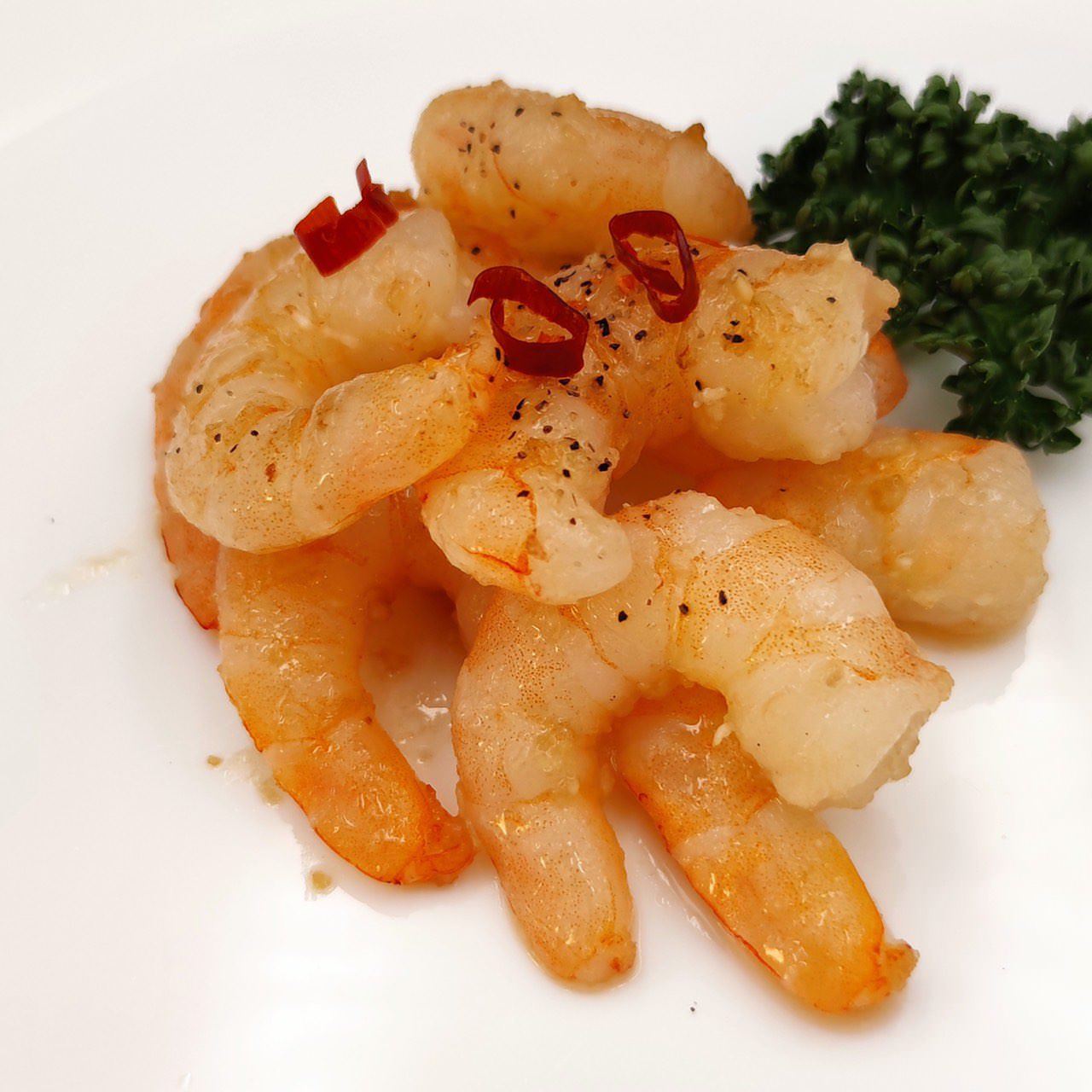 마늘로 향을 낸 많은 양의 버터 또는 기름으로 새우를 볶은 요리.
