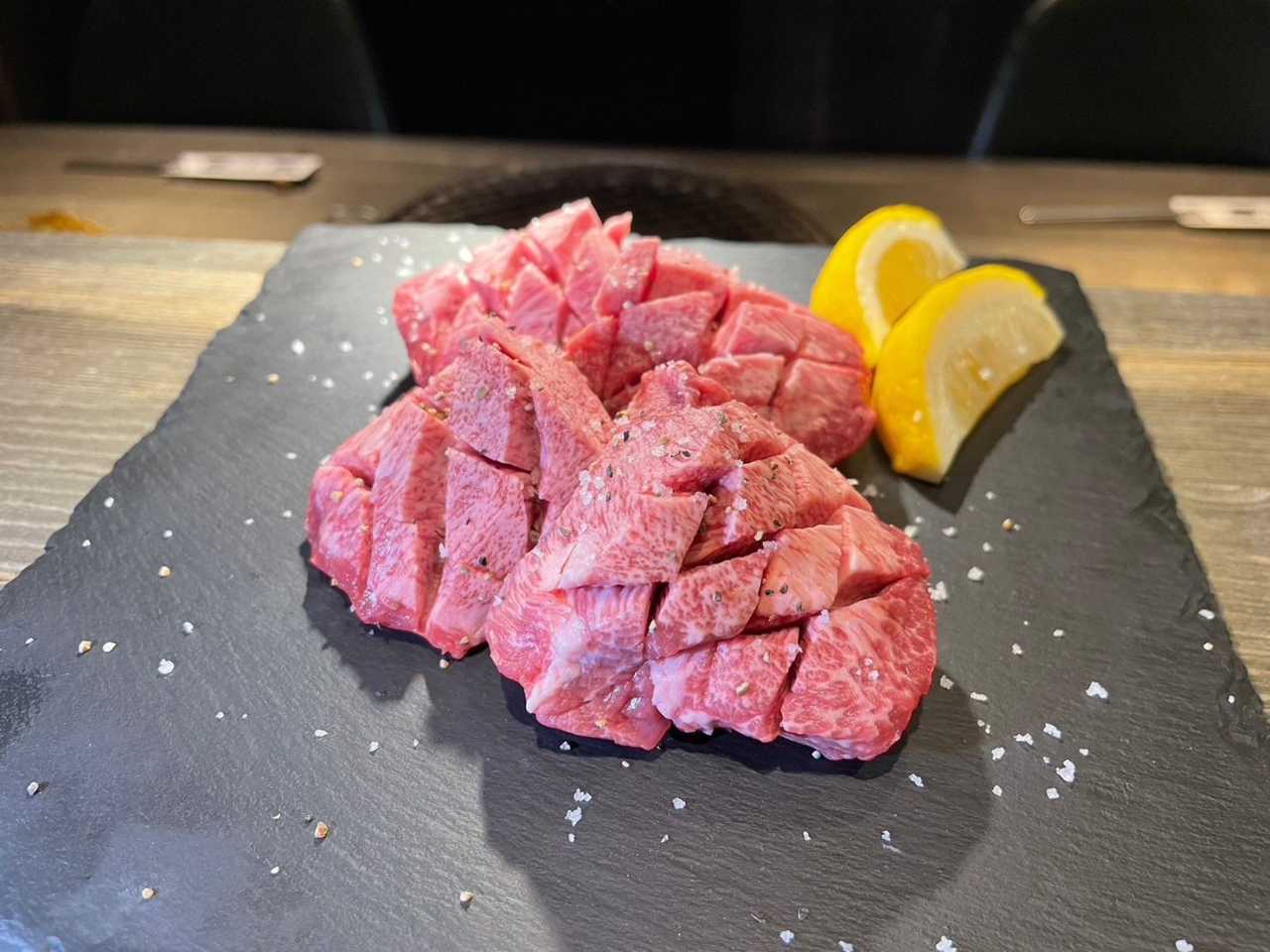 두껍게 썬 상급 랭크의 탄이라고 불리는 혀 부분을 소금으로 간을 하여 구운 고기 요리.