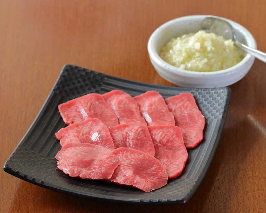 탄이라고 불리는 우설 부위를 철판으로 살짝 구워 소스 등을 찍어 먹는 구이 요리.