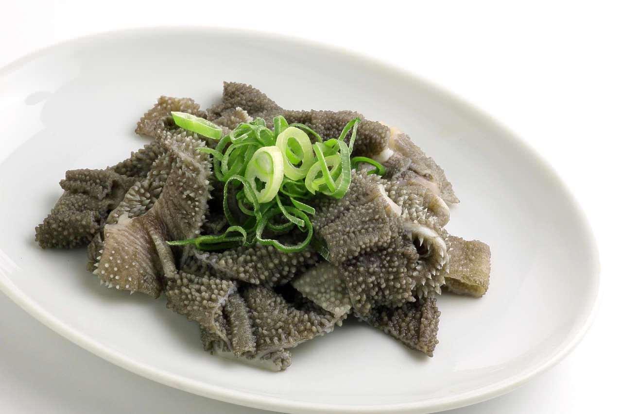 아카센(기아라)라고 불리는 위 부분을 사용한 고기요리.