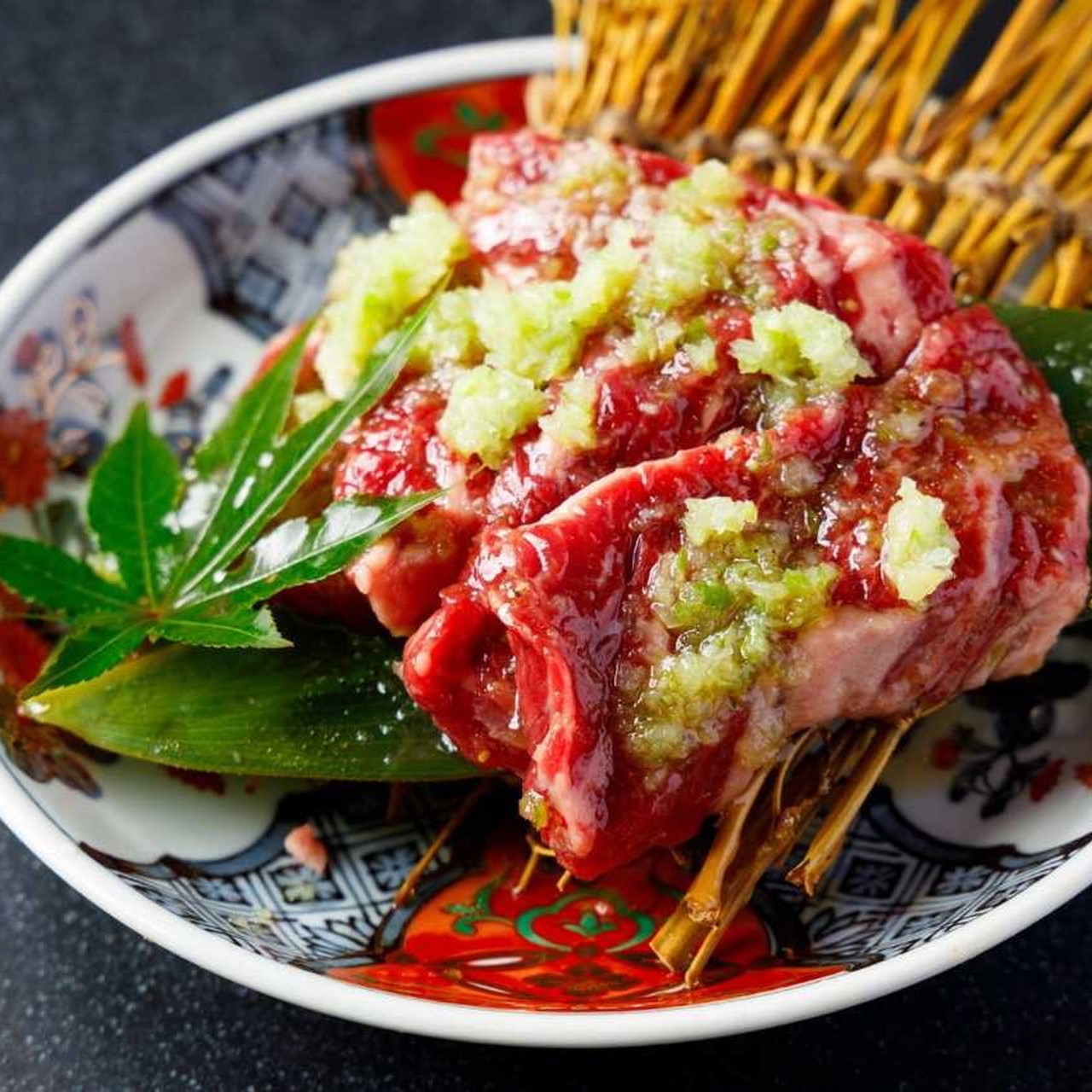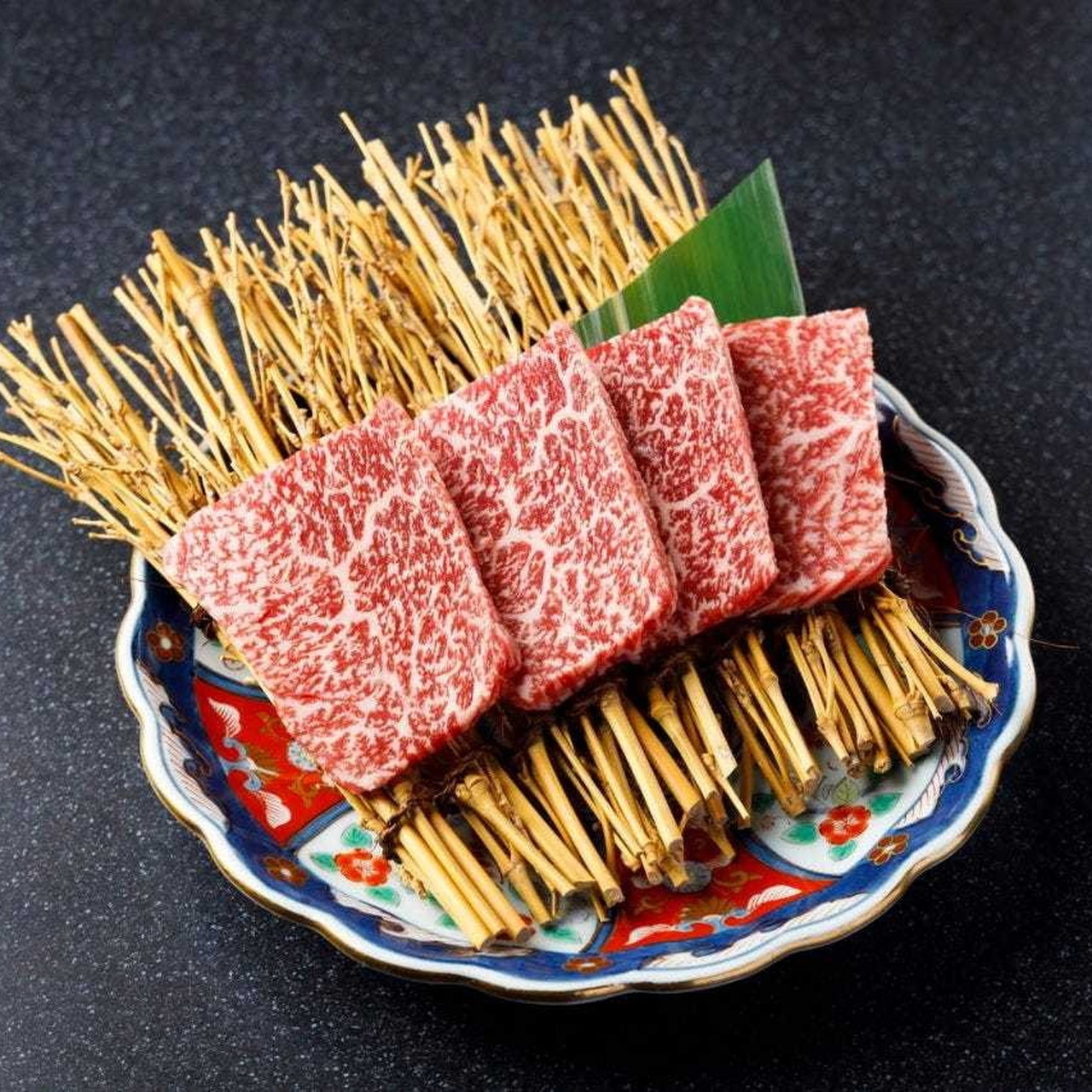 와규 갈비뼈에 붙은 살코기를 사용한 요리.